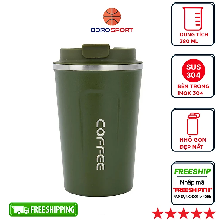 Bình nước giữ nhiệt trà coffee mugs Cleacco Chất Liệu Inox 304 Kiểu Dáng Hiện Đại ( 380 ML ) Boro Sport