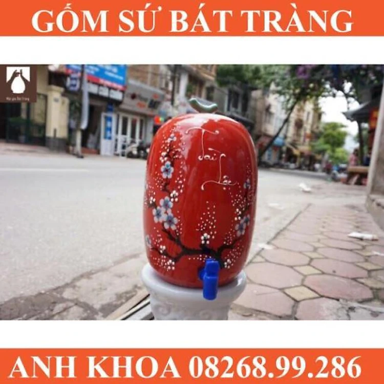 Bình nước hình dưa hấu 10l - Gốm sứ Bát Tràng Anh Khoa