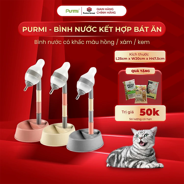 Bình nước kết hợp bát ăn có khấc Purmi nhiều màu
