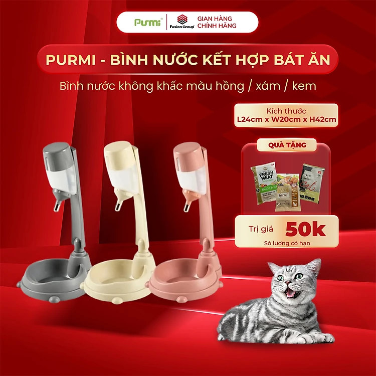 Bình nước kết hợp bát ăn không khấc Purmi nhiều màu