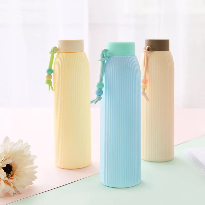 BÌNH NƯỚC THỦY TINH GIỮ NHIỆT BỌC NHỰA 420ML