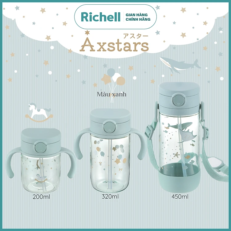 Bình ống hút AXSTARS Richell Nhật Bản 320ml chống sặc cho bé từ 7 tháng | Baby