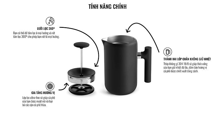 Giải pháp cho những quán cà phê hoặc gia đình đã đến. Thành cách nhiệt chân không của Clara sẽ giúp cà phê của bạn được chiết xuất tối ưu nhất và giữ nóng cho đến ly cà phê thứ 2 và thậm chí là thứ 3 của bạn. Trong khi lưới lọc được cải tiến để bạn không phải khó chịu với cặn cà phê còn sót lại, rất dễ sử dụng. Bạn chỉ cần đúng tỉ lệ pha chế, sau đó là ngâm ủ cà phê. Cùng với thành bên trong chống bám bẩn, Clara rất dễ vệ sinh.