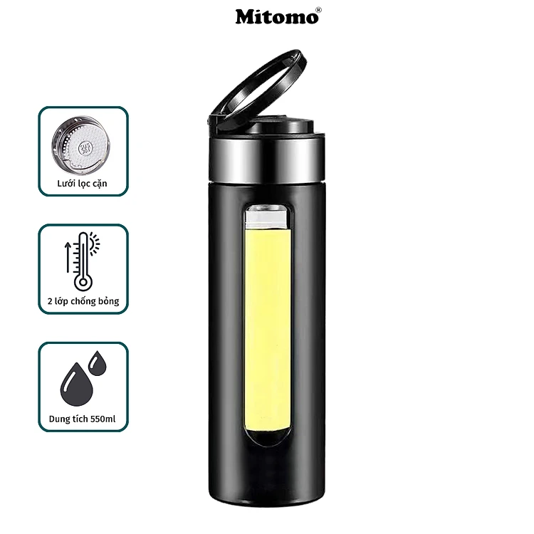 Bình pha trà, bình pha cà phê thủy tinh 2 lóp cao cấp Mitomo BGH-0509, 550ml có lõi lọc trà inox 304 - Hàng chính hãng