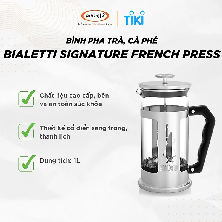 BÌNH PHA TRÀ, CÀ PHÊ BIALETTI SIGNATURE FRENCH PRESS (1 LÍT)