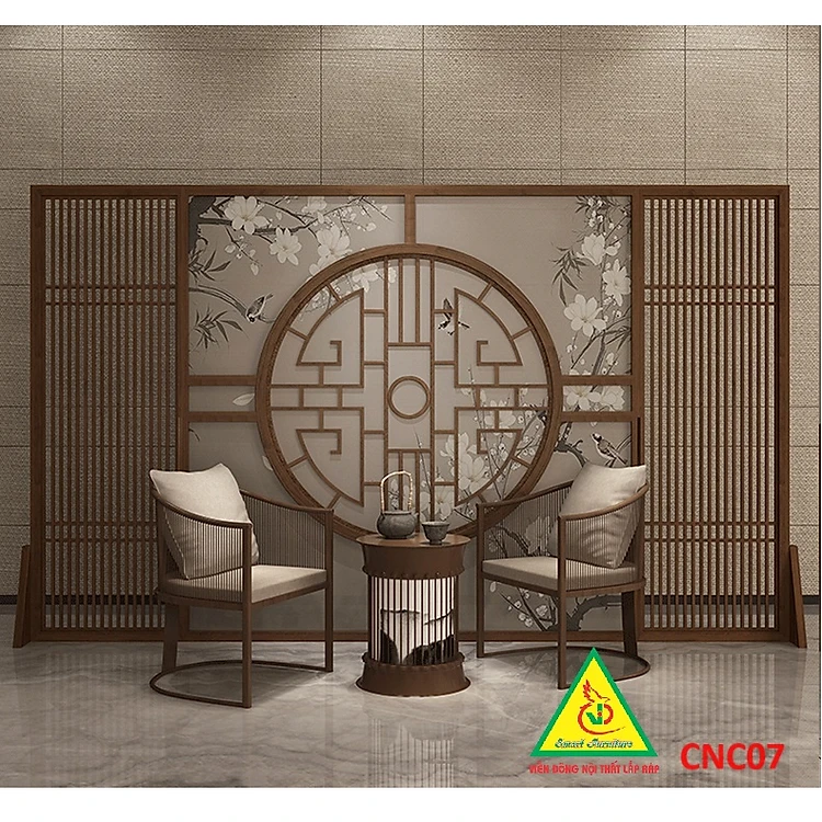 Bình phong gỗ khung tranh cắt CNC cho phòng khách, nhà bếp, nhà hàng, spa CNC07 - Nội thất lắp ráp Viendong Adv