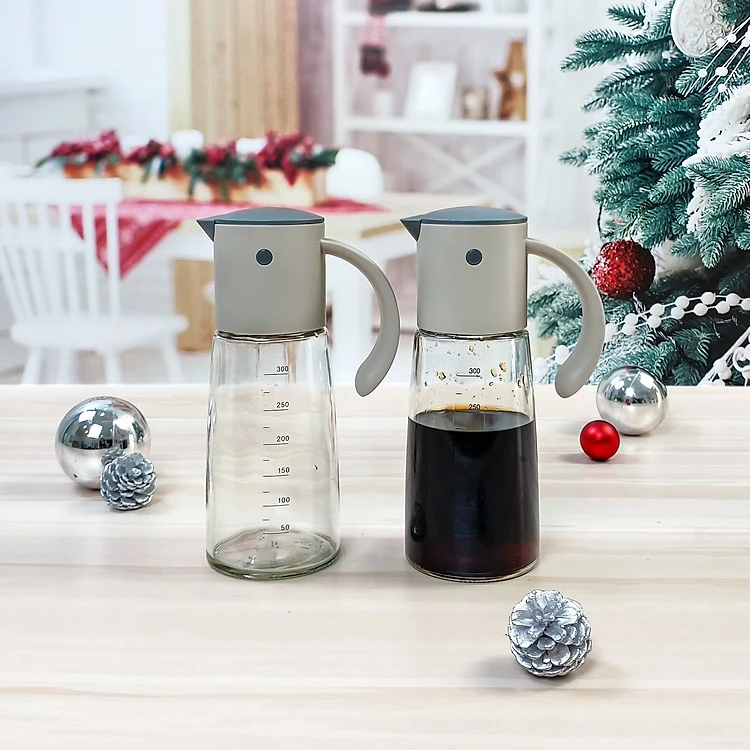 Bình Rót Dầu Nắp Mở Tự Động Có Chia Vạch Bằng Thủy Tinh Cao Cấp 300ml LLG706 (cam kết hàng chính hãng)
