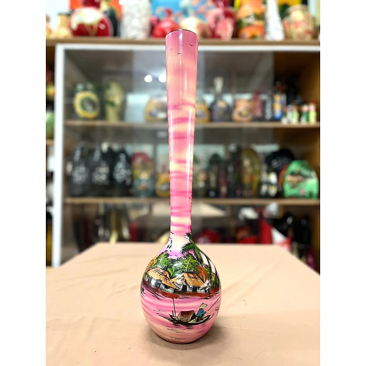 Bình sơn mài cao cấp Thanh Bình Lê cắm hoa, trang trí, vẽ cảnh đồng quê yên bình