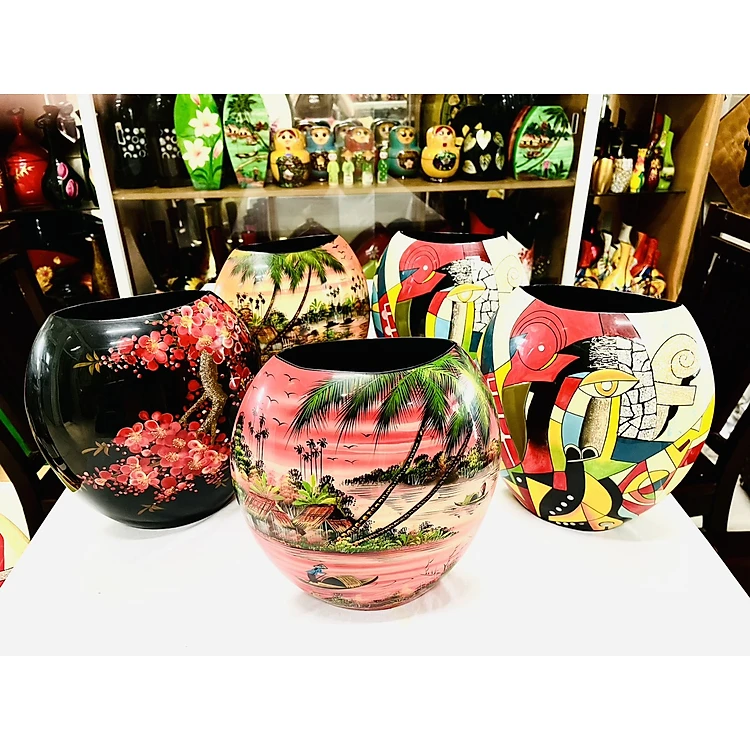 Bình Sơn Mài dẹp Cao Cấp Thanh Bình Lê size 30x25x12 thích hợp cắm hoa, trang trí, làm quà tặng,...