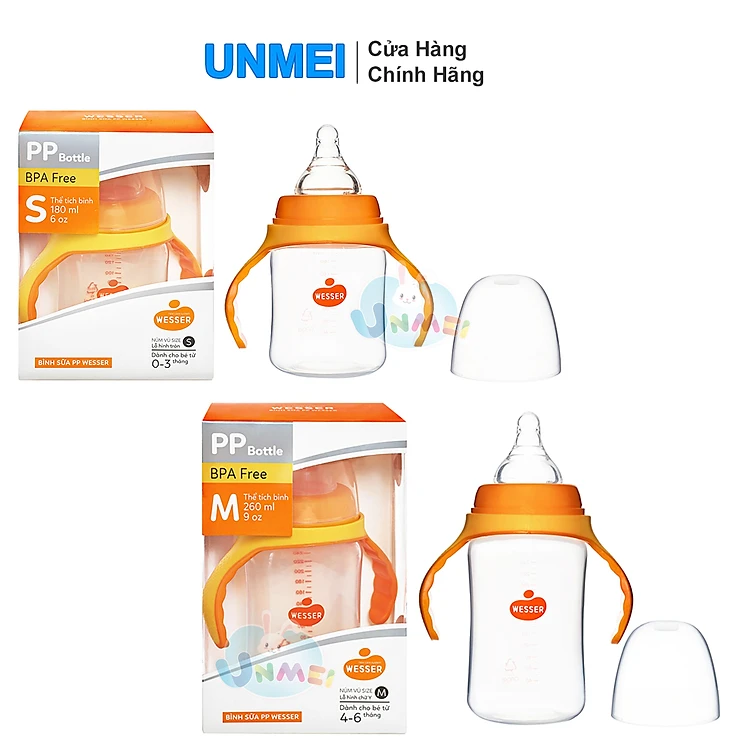 Bình sữa cổ rộng PP Wesser 180ml/260ml