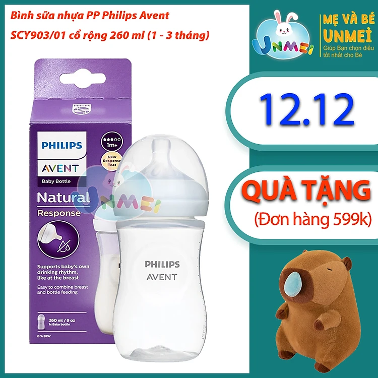 Bình sữa mô phỏng tự nhiên mới hiệu Philips Avent cho trẻ từ 1 tháng tuổi (260ml-đơn)_SCY903.01