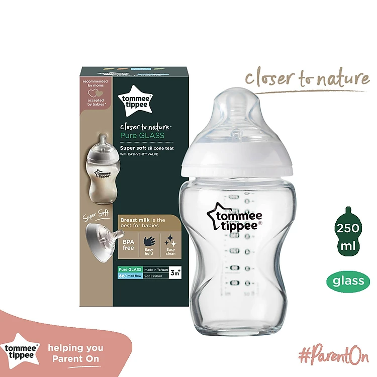 Bình Sữa Thủy Tinh Ty Siêu Mềm Tự Nhiên Tommee Tippee Natural Start 250ml, Núm Ty Của Bình 3-6 tháng