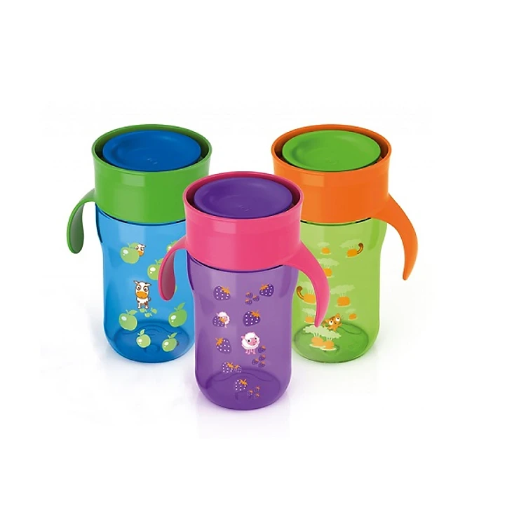 - Việc cầm nắm bình sẽ rất dễ dàng cho bé khi có 2 tay cầm 2 bên. Kèm theo đó, bình có nắp đậy vệ sinh, bảo đảm tránh bụi bẩn bám vào miệng bình.