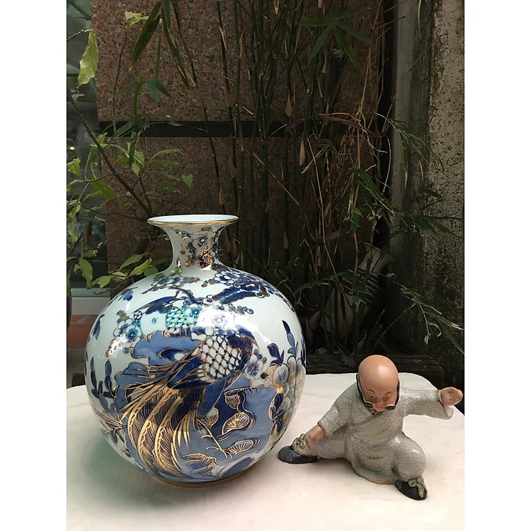 Bình thu tài lộc vẽ vàng kim cảnh Chim trĩ hoa đào