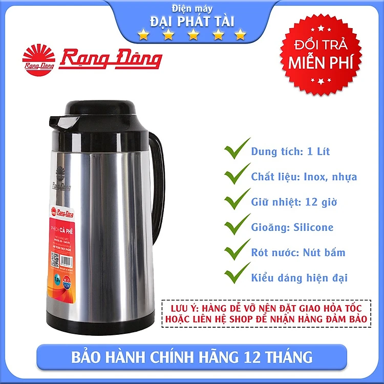 Bình Thủy Inox Rạng Đông RD1040 ST2 (1L)