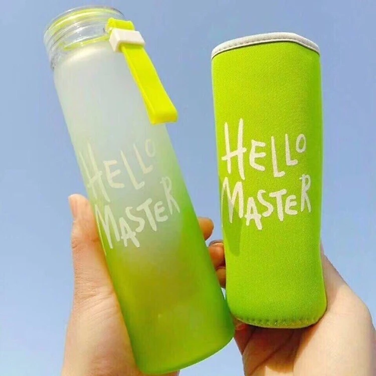 Với thiết kế đơn giản bình thủy tinh có in chữ HELLO MASTER đủ màu và nắp nhựa có ron chất liệu cao su.