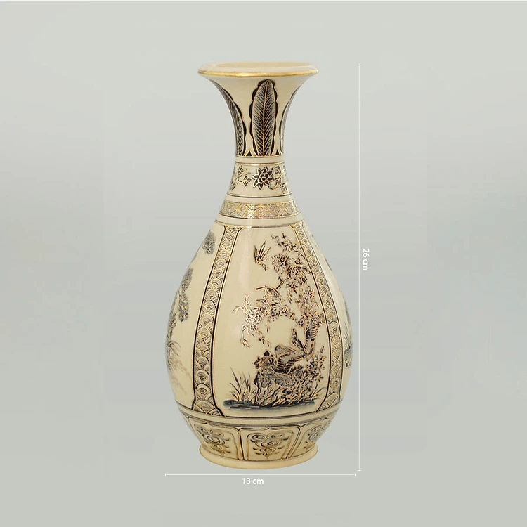 Bình tỳ bà gốm Chu Đậu (S6) - Kích thước F13 x H26 cm