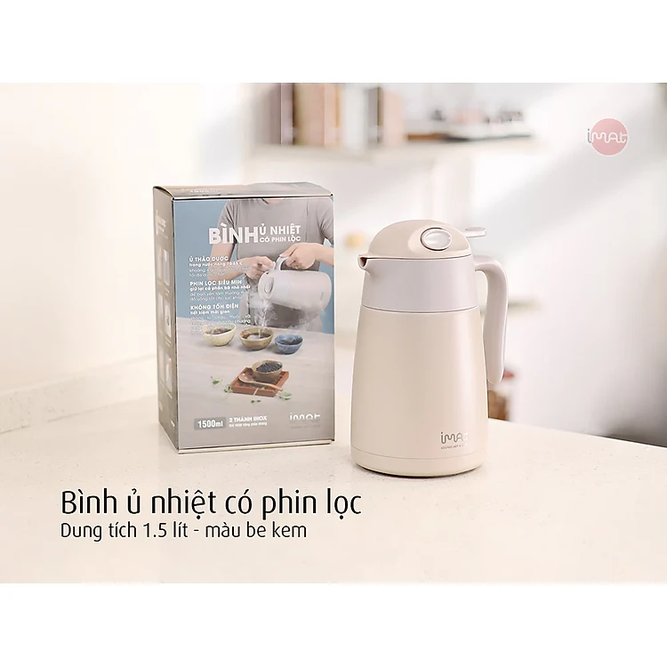 Bình ủ nhiệt iMat có phin lọc 1200ml / 1500ml / 2000ml ruột bình, phin lọc Inox 304, nắp tay cầm nhựa ABS cao cấp