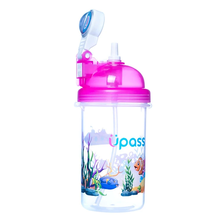 Bình Uống Nước Nắp Bật Có Ống Hút Upass UP0820Y - Hồng (420ml)