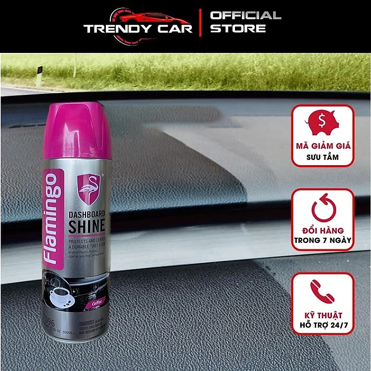 Bình xịt dưỡng bóng nội thất và đồ da ô tô hương cafe - Flamingo F096 500ml - Vệ sinh Nội thất ô tô Trendy Car