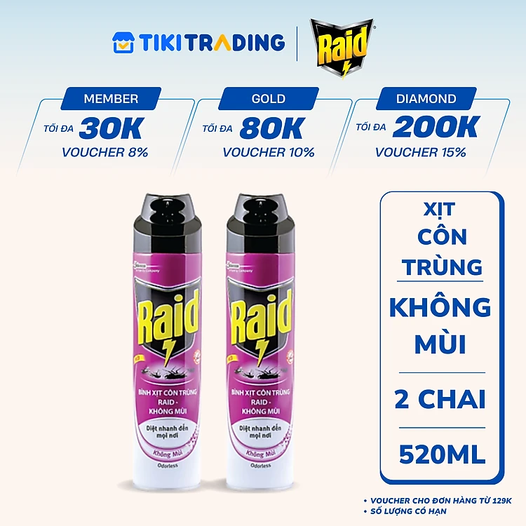 Combo 2 Bình Xịt Côn Trùng RAID Không Mùi 520ml