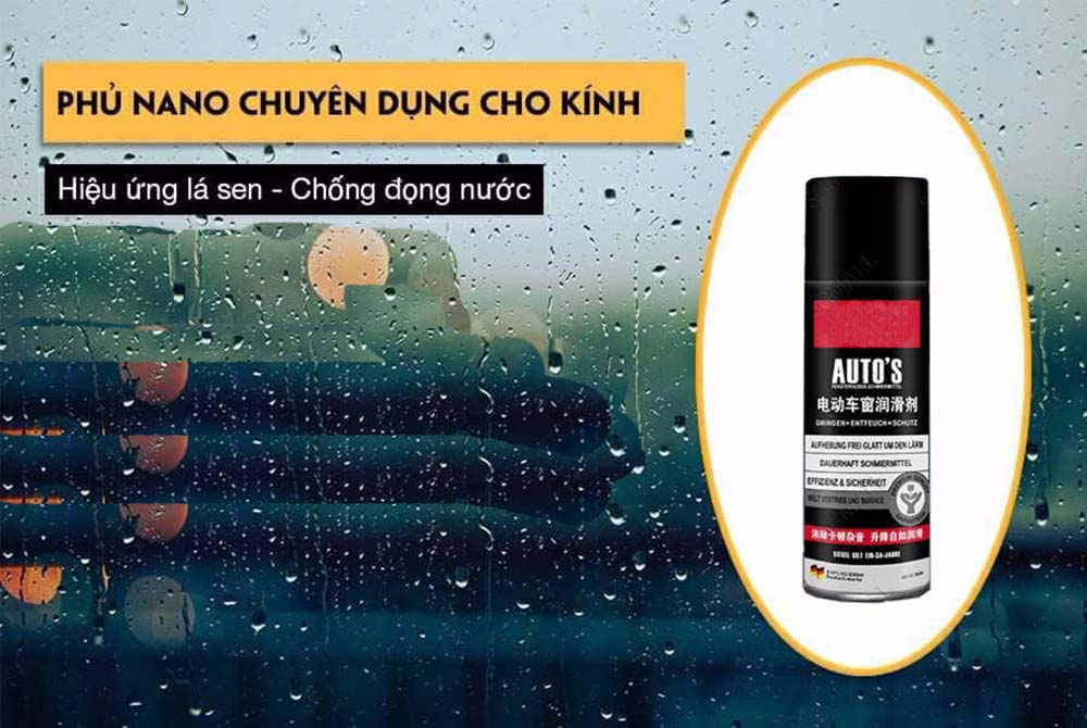 Sản phẩm có chứa chất chống đọng nước mưa trên kính với công nghệ tạo hạt (hiệu ứng lá sen), giúp bạn quan sát tốt cả khi không cần gạt mưa. Áp dụng trên kính chắn gió, kính hai bên và kính hậu để tăng tối đa tầm nhìn, bạn sẽ không gặp khó khăn khi quan sát vì bị nước mưa bám vào kính; đảm bảo an toàn khi lái xe, đặc biệt khi bạn lùi xe dưới trời mưa trong khi bên ngoài thiếu ánh sáng.