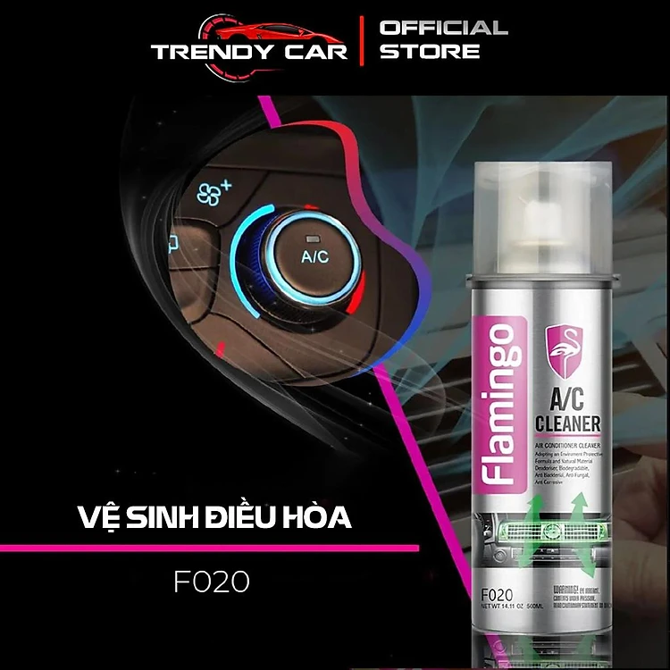 Bình xịt vệ sinh điều hòa ô tô Flamingo, Dung dịch tẩy điều hòa ô tô cao cấp hàng Mỹ chất lượng cao nhập khẩu