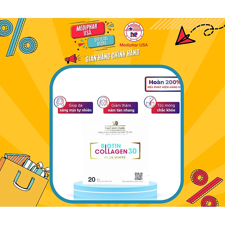 Biotin Collagen 30 plus white-Hộp 4 vỉ x5 ống - Mediphar USA sản xuất chuẩn GMP