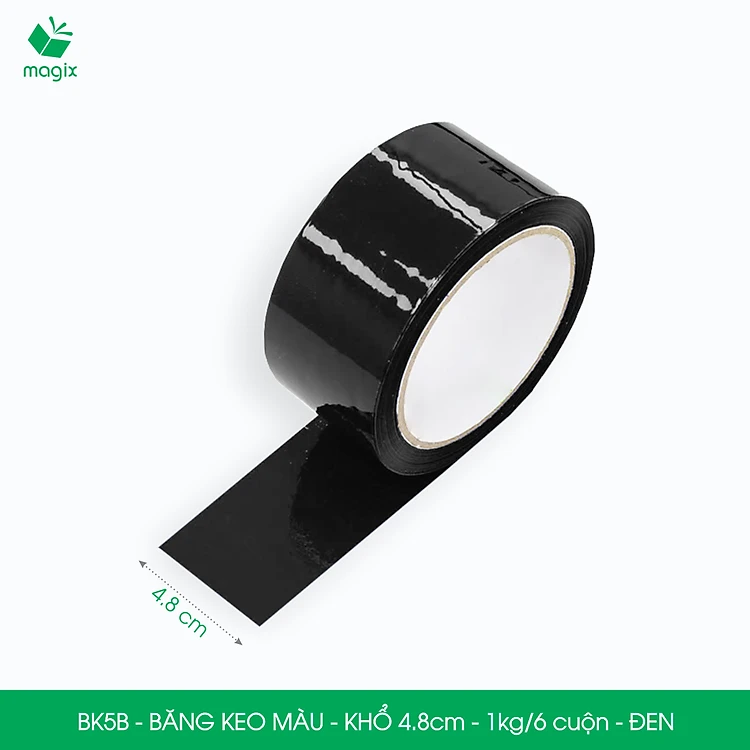 BK5B - 1 cuộn băng keo màu khổ 4.8cm loại 1kg/6 cuộn - Đen - Băng keo, băng dính đóng hàng