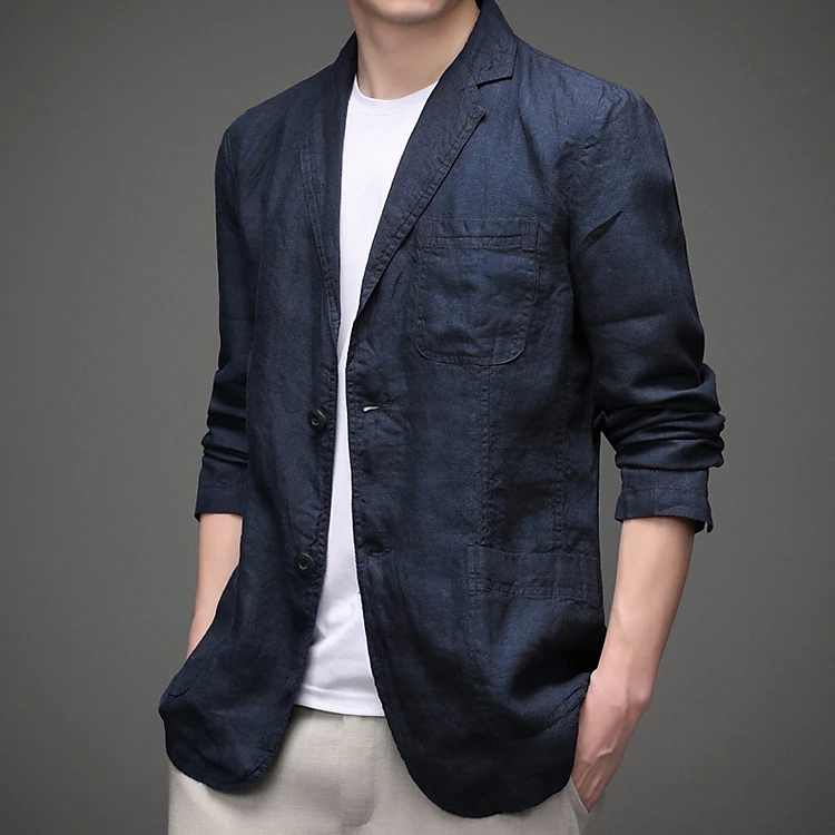Blazer nam chất linen cổ xẻ kiểu, tay dài, thích hợp mùa thu đông, chất dày dặn đứng form, phong cách Hàn Quốc Bz06