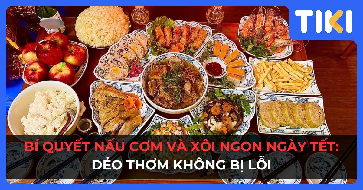 Để mâm cỗ đầu năm thêm trọn vẹn, việc chuẩn bị những bát cơm trắng ngần hay đĩa xôi gấc đỏ tươi dẻo thơm là điều vô cùng quan trọng. Hãy cùng Tiki khám phá ngay những bí quyết nấu cơm và xôi ngon ngày Tết dưới đây để món ăn luôn chuẩn vị, không lo bị khô hay nát, giúp bạn tự tin trổ tài chiêu đãi cả gia đình nhé!