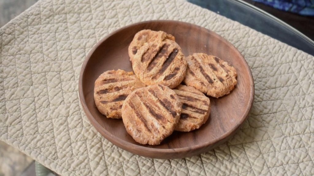 - Bước 2: Chia bột khoai thành những phần nhỏ vừa đủ một chiếc bánh rồi vo tròn và ấn dẹt. Sau đó, bạn hãy rắc mè lên những chiếc bánh rồi xếp vào khay có lót giấy nến.