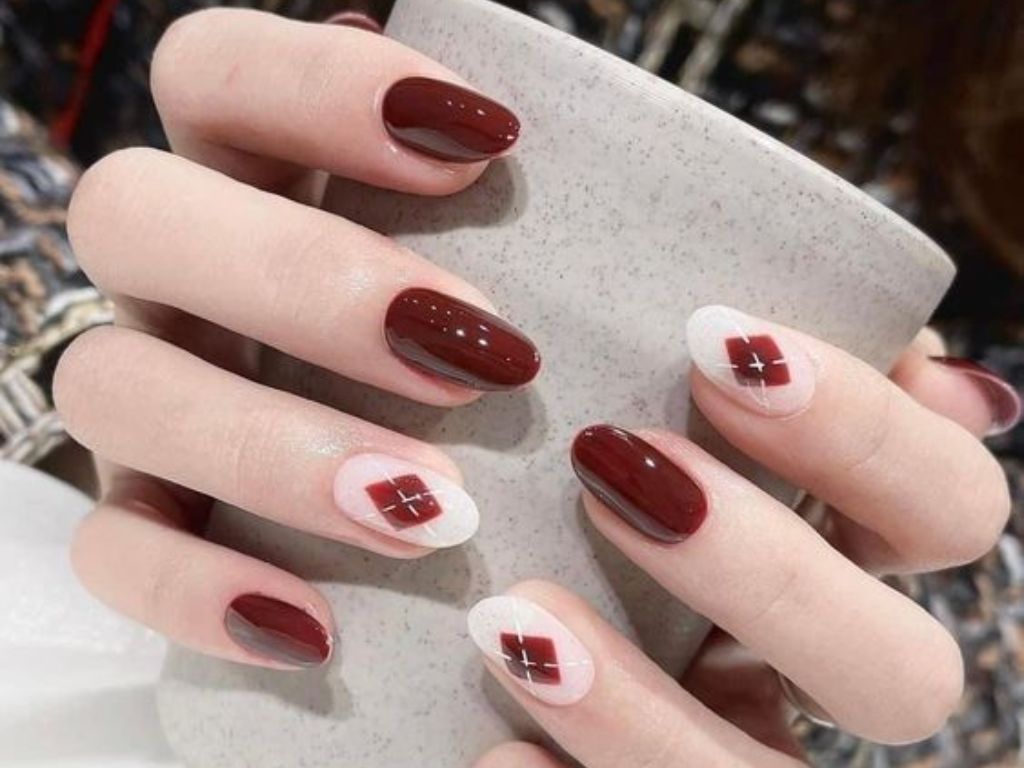 Mẫu nail móng ngắn màu đỏ trầm tôn da hiệu quả (Nguồn: Internet)