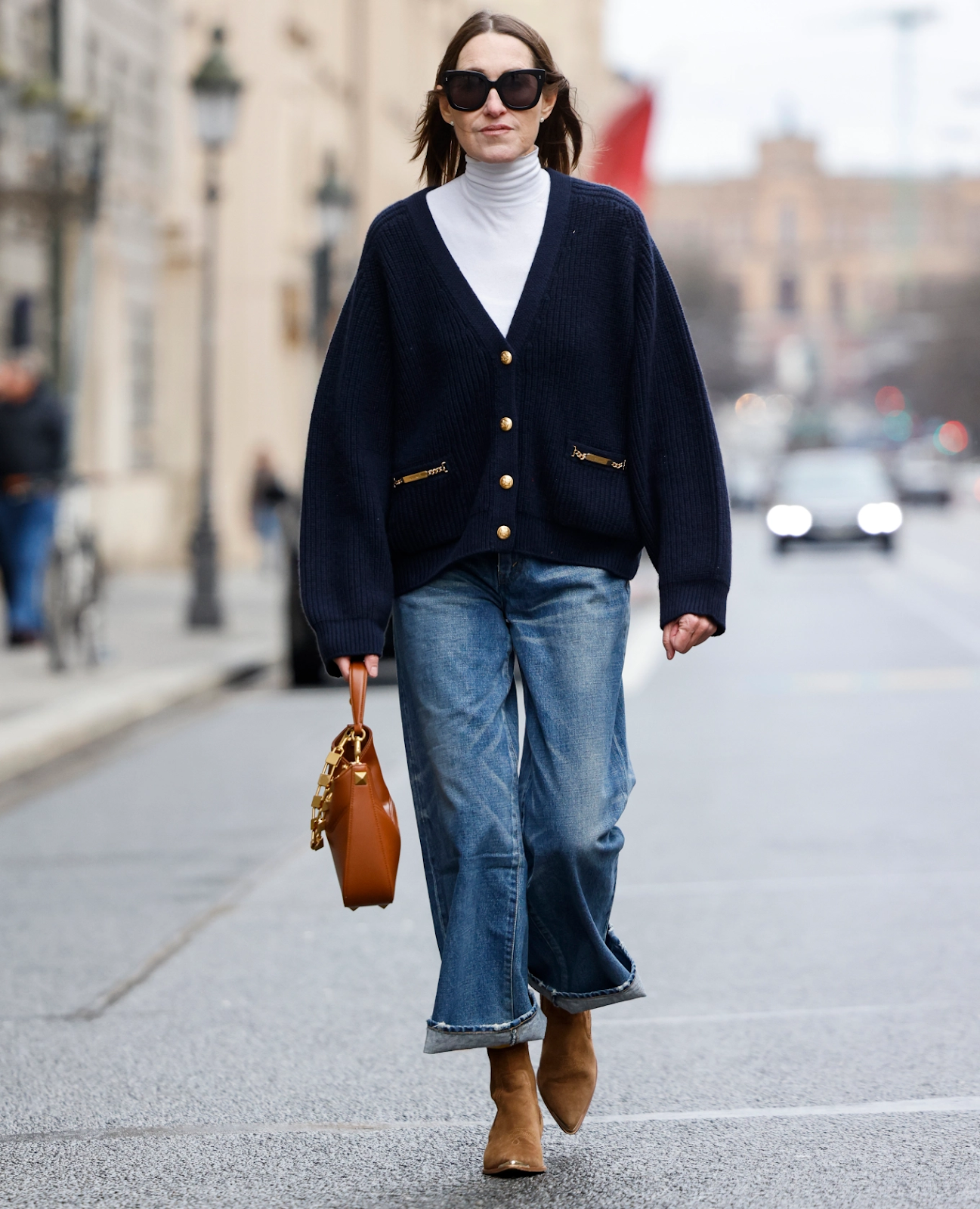 Những quý cô sành điệu chắc chắn không thể bỏ qua gợi ý phối đồ cùng cardigan cực chất này. Bạn có thể kết hợp cardigan bên ngoài với áo cổ lọ bên trong cùng quần jean và một vài phụ kiện ăn ý như: Boots, túi xách, mắt kính… Để có ngay tổng thể đầy cuốn hút khi ra ngoài.