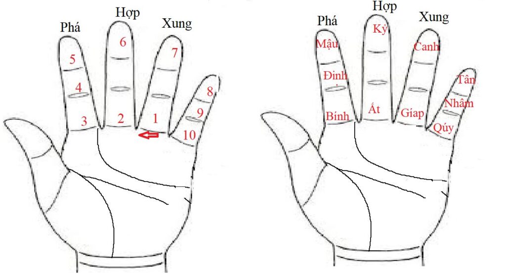 - Các cặp Thiên can khắc nhau: Giáp – Canh; Ất – Tân; Bính – Nhâm; Đinh – Quý; Mậu – Giáp.