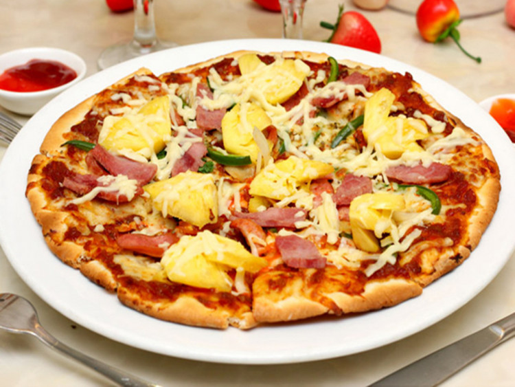 Hawaiian Pizza (Pizza kiểu Hawaii): Jambon, thơm, hành tây, sốt cà, phô mai mozzarella, lá oregano.