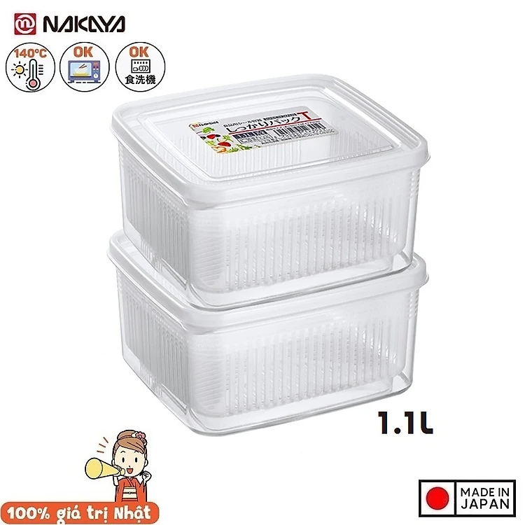 Bộ 02 chiếc hộp đựng thực phẩm 2 lớp Nakaya 1100ml hàng nội địa Nhật Bản (Made in Japan)