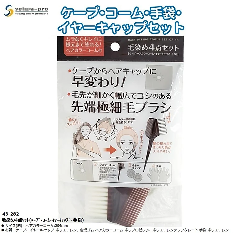 Bộ 04 món nhuộm tóc tiện lợi Seiwa Pro (áo choàng/lược/mũ tai/găng tay) - Hàng nhập khẩu Nhật Bản