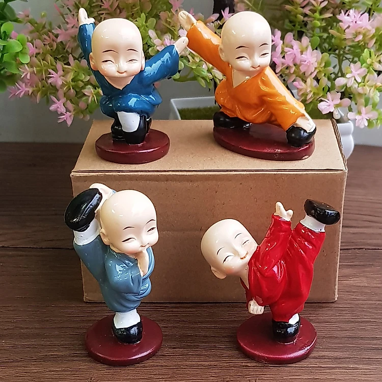 Bộ tượng 4 chú tiểu múa võ được nhiều người yêu thích trang trí taplo ô tô, bàn làm việc của mình. Bộ tượng khắc họa hình ảnh 4 chú tiểu với 4 thế võ khác nhau vô cùng vững chãi, khỏe mạnh và ngộ nghĩnh đáng yêu.
