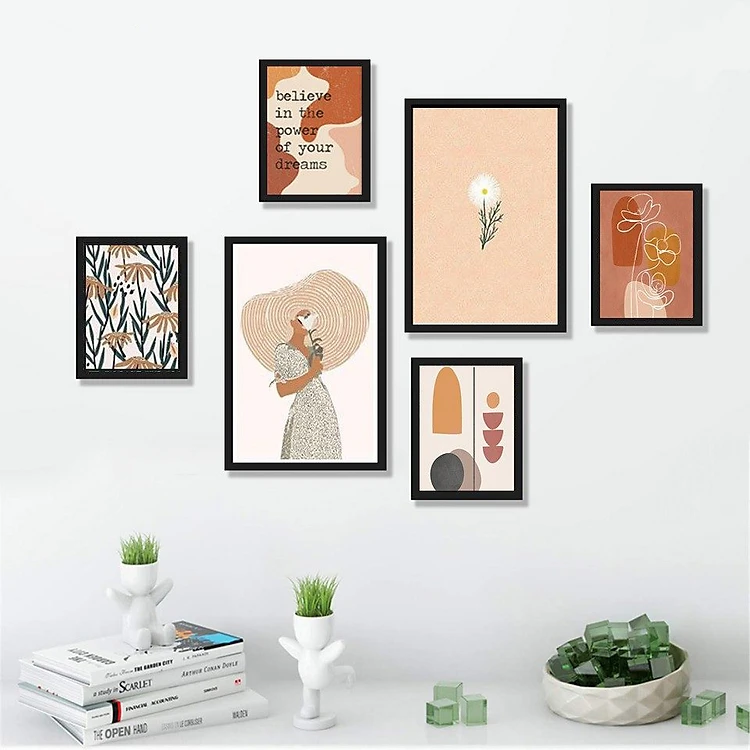Bộ 06 tranh treo tường Girl with Flower tối giản trang trí phòng khách, phòng ngủ - Tặng kèm đinh ba chân chuyên dụng treo tranh
