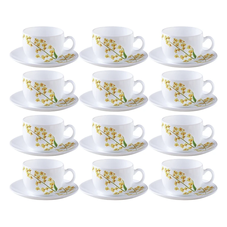 Bộ 1 Bộ Tách Đĩa Trà Thủy Tinh 16Cl La Opala Diva Ivory Y.G LACU160YG (12 Món)