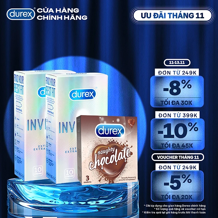 BỘ 1 HỘP BAO CAO SU siêu mỏng thêm bôi trơn DUREX INVISIBLE LUBRICATED và 1 HỘP DUREX INVISIBLE EXTRA THIN EXTRA SENSITIVE (52 mm, 10 bao/hộp)