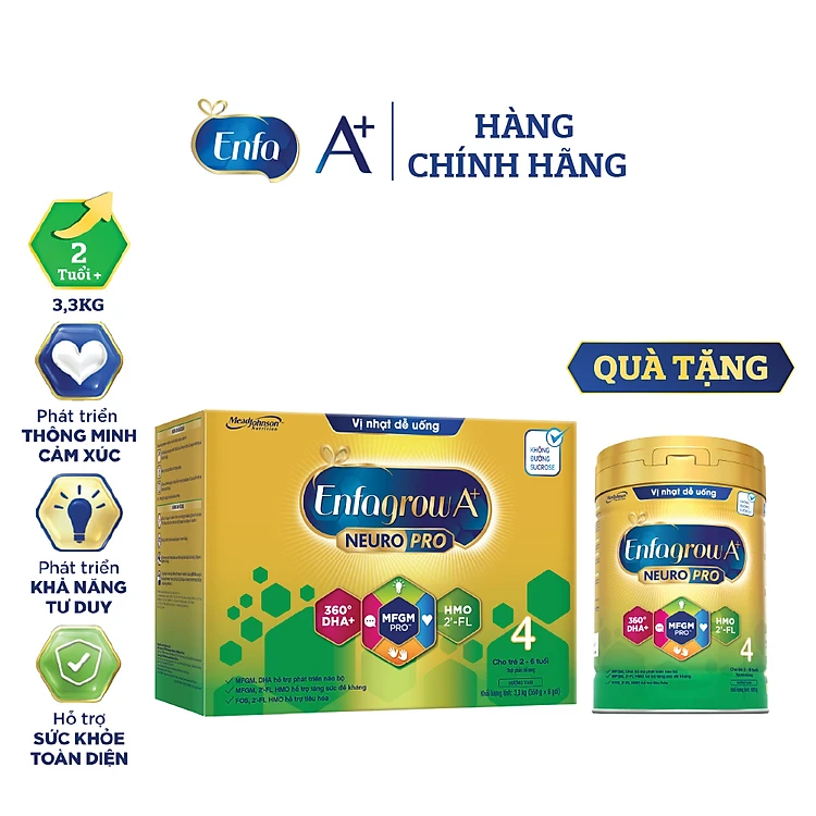 Bộ 1 hộp sữa bột Enfagrow A+ NeuroPro 4 với 2’-FL HMO cho trẻ từ 2 – 6 tuổi – 3.3kg Tặng 1 lon 830g cùng loại