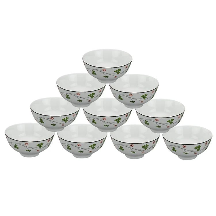 - Bộ 10 Cái Chén Cơm 11.5cm Hoa May Mắn Gốm Sứ Minh Long được nung ở nhiệt độ cao (từ 1260°C đến 1380°C). Sản phẩm bền, cứng, khó bể mẻ, khó trầy xước.