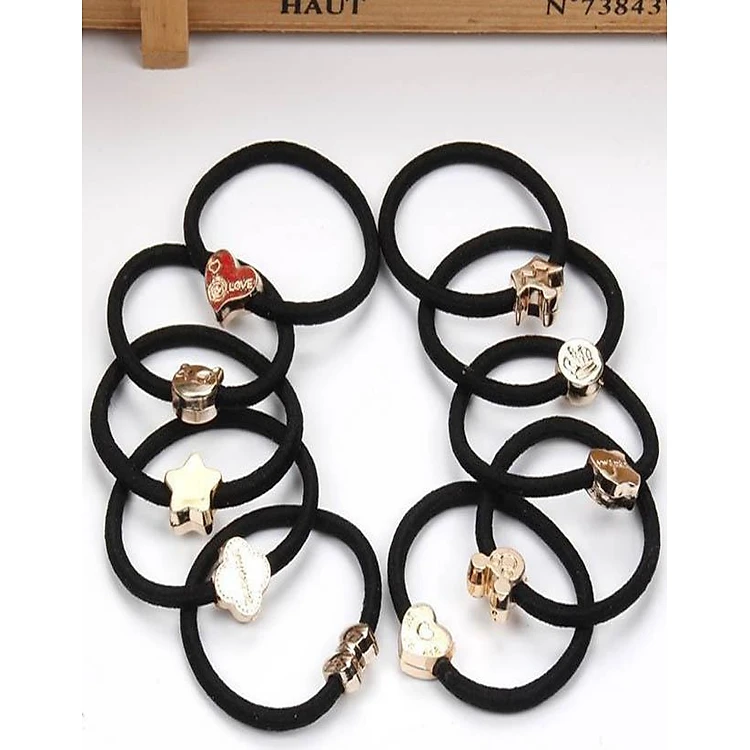 Bộ 10 cột tóc màu đen họa tiết dễ thương nhiều kiểu (kiểu ngẫu nhiên)