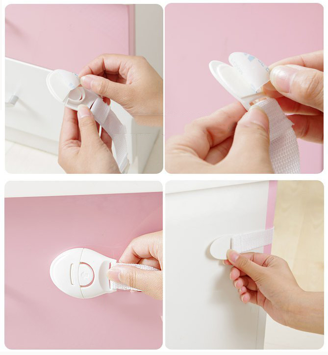 - Khóa chặn cửa tủ lạnh an toàn cho bé được thiết kế với mặt sau được dính rất chắc chắn bé muốn cậy cũng không thể nào cậy được, bạn hãy yên tâm khi con được bảo vệ an toàn nhé. Ngoài ra khóa còn chặn được các loại tủ chống cho bé bị kẹt vào tay khi rút ra rút vào các ngăn, khe ở tủ