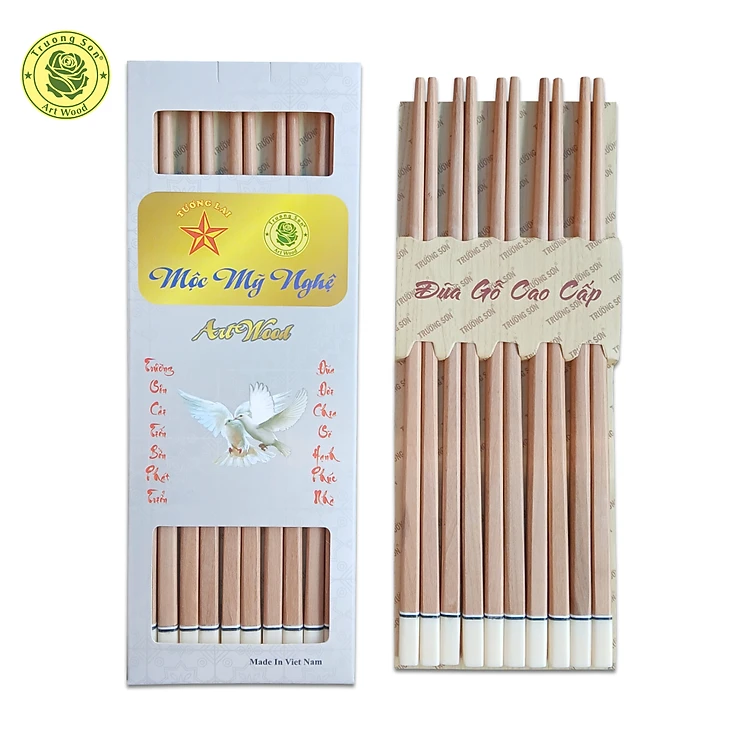 Bộ 10 Đôi Đũa Gỗ Sao Ghép Đầu Trắng Cao Cấp - Đồ Gỗ Gia Dụng Thủ Công Mỹ Nghệ Thương Hiệu Trường Sơn