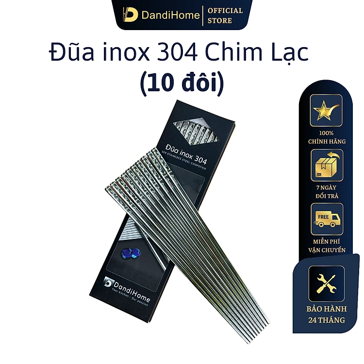 Bộ 10 đôi đũa inox 304 - 316 DandiHome 2020 chống trơn trượt, sang trọng, tinh tế