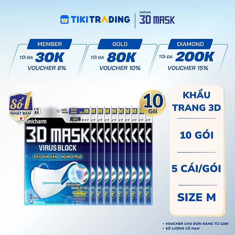 Combo 10 gói Khẩu Trang Unicharm 3D Mask High Block size M (5 cái/gói)