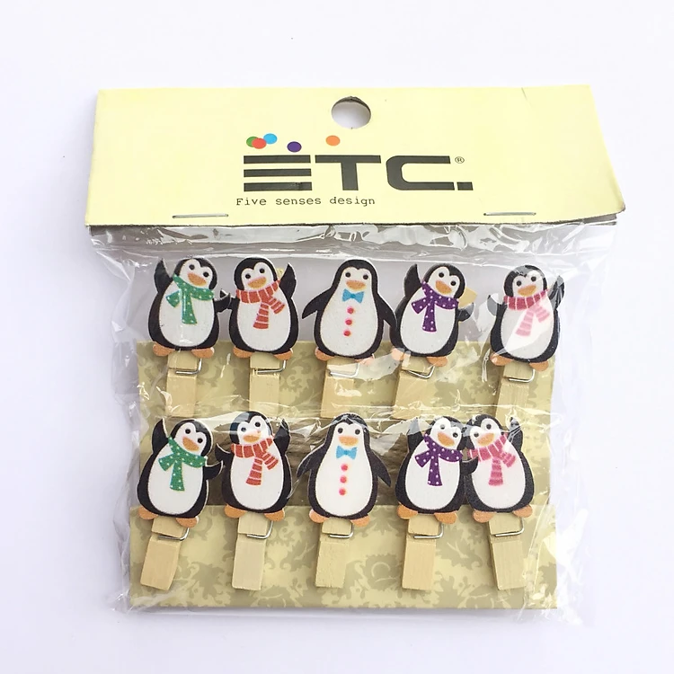 Bộ gồm 10 kẹp ảnh gỗ hình những chú chim cánh cụt dễ thương